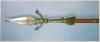 Stal kuta, nabijana srebrem i złotem. Długość grotu 27 cm, rozwartość prętów 18.8 cm Bogate zdobienia: motywy roślinne, zwierzęce, sceny myśliwskie RO 00273 Kradzież w marcu 2005 r. z sali ekspozycyjnej Skarbca na Wawelu